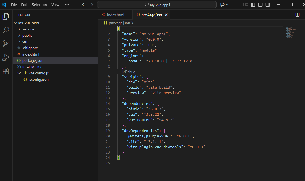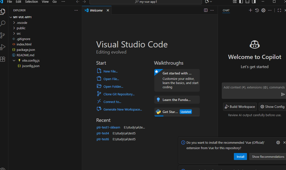 启动VSCode,然后在左上角File-->Open Folder 找到刚才创建的文件夹my-vue-app1打开即可