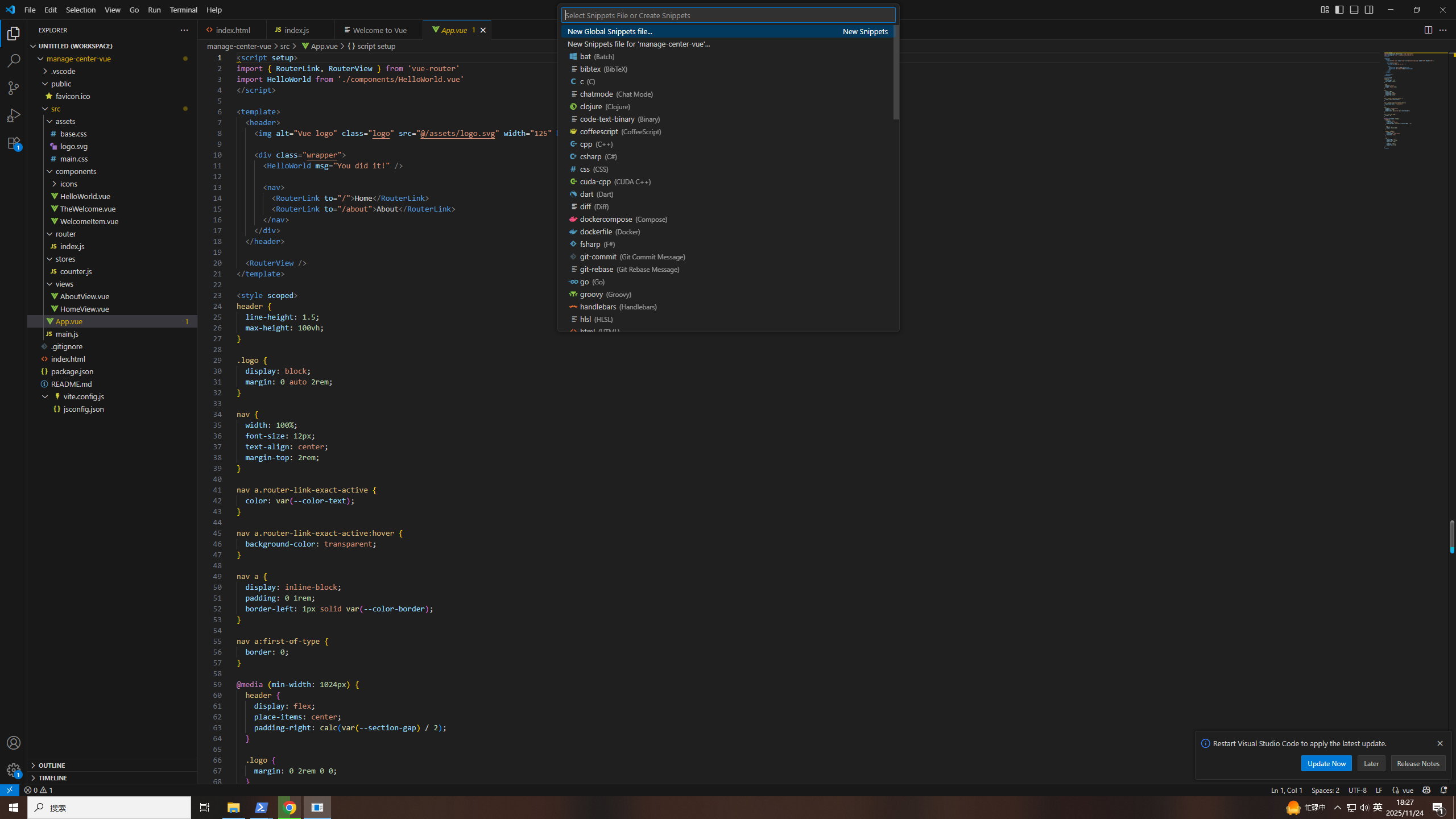 在vue文件中输入vue3 就会出现模板选项,效果如下图,比较方便