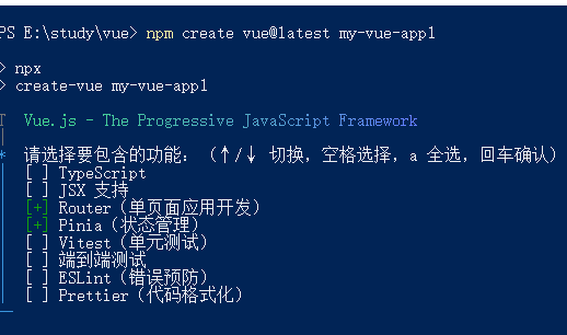 执行命令:npm create vue@latest my-vue-app1,会出现如下面的界面