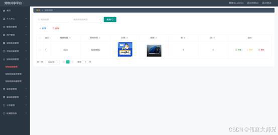 图5.5 即为编码实现的宠物视频管理界面,管理员在该界面中主要是上传宠物视频,对宠物视频信息包括视频文件,视频标题等资料进行更改,查询,或删除,可以查看已发布宠物视频的用户点赞数等信息。