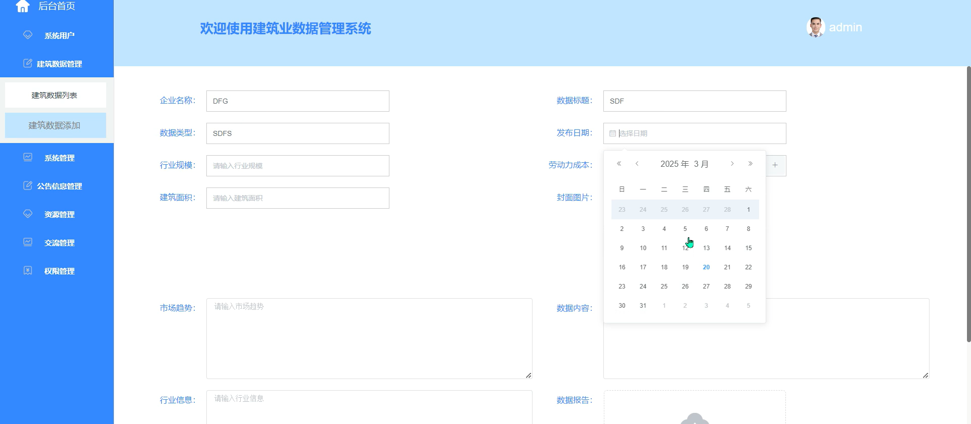 - 建筑数据管理:录入、更新、删除建筑项目 / 材料数据,支持批量导入 / 导出。