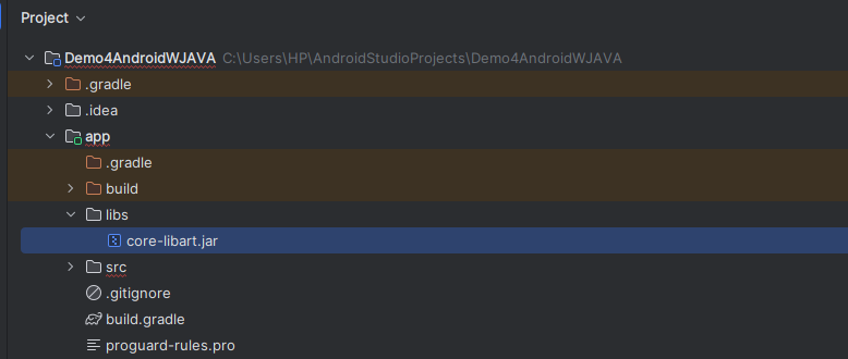 从AOSP中编译一个core-libart.jar,并拷贝到该Android Project下app模块内的libs目录中: