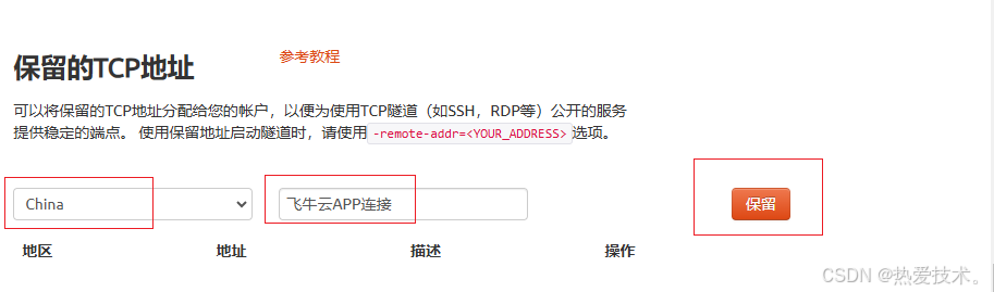 预留的TCP地址:填写官网保留成功的地址,