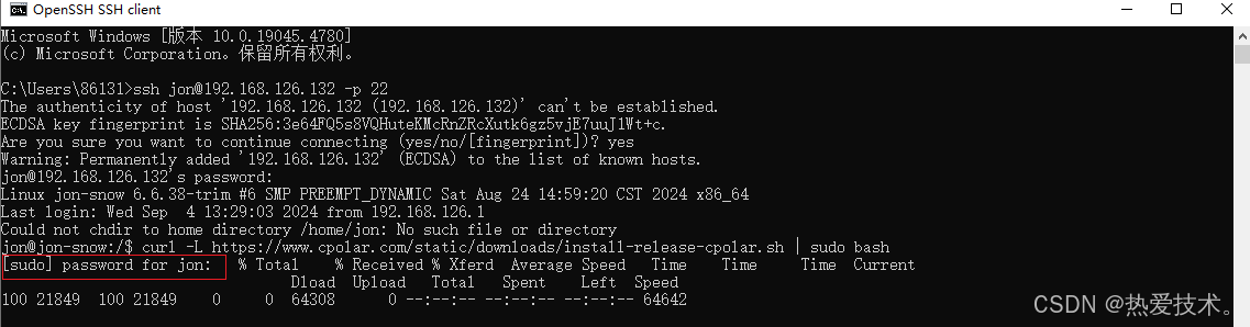 连接后执行下面cpolar Linux 安装命令