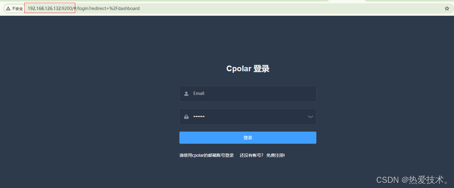 启动cpolar服务后,我们通过NAS局域网IP访问9200端口,即可看到cpolar的web ui 管理界面,一切操作在管理界面操作即可,如果没有账号,可以进入下面cpolar官网注册,或者点击登陆按钮下面免费注册也可以跳转去免费注册,注册后登录即可,这样cpolar在飞牛云安装就完成了.