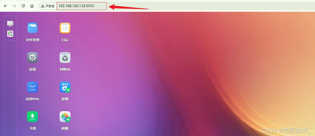 我们本地访问飞牛云NAS的时候,在浏览器可以看到局域网IP和默认的8000端口,通过上面的局域网IP,我们可以在手机飞牛云APP直接连接