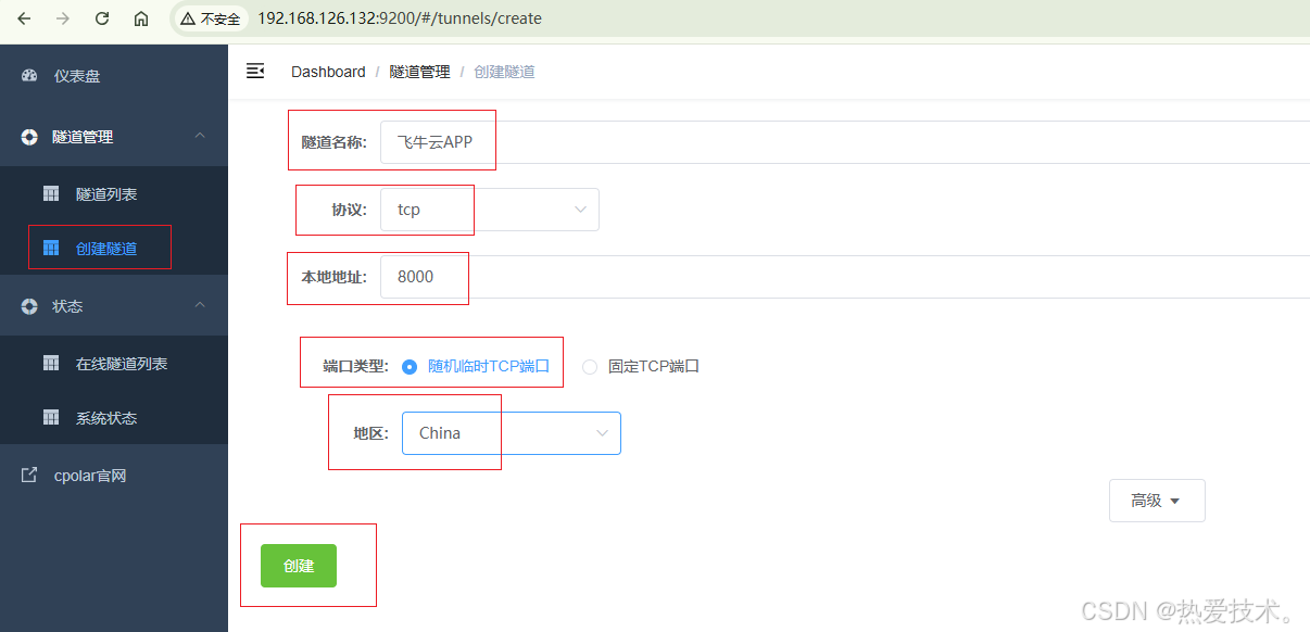 登录cpolar web UI管理界面后,点击左侧仪表盘的隧道管理------创建隧道: