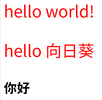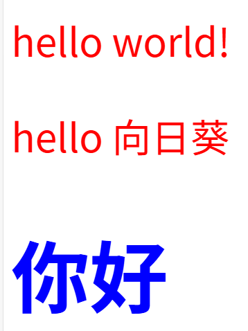 则展示效果:因为选择器没有选中h1对应的标签,所以h1不是所设置的样式: