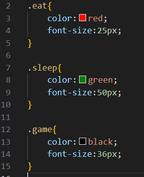 方法操作:就是比如上图的9~11行的标签中分别指定类名,通过使用class: