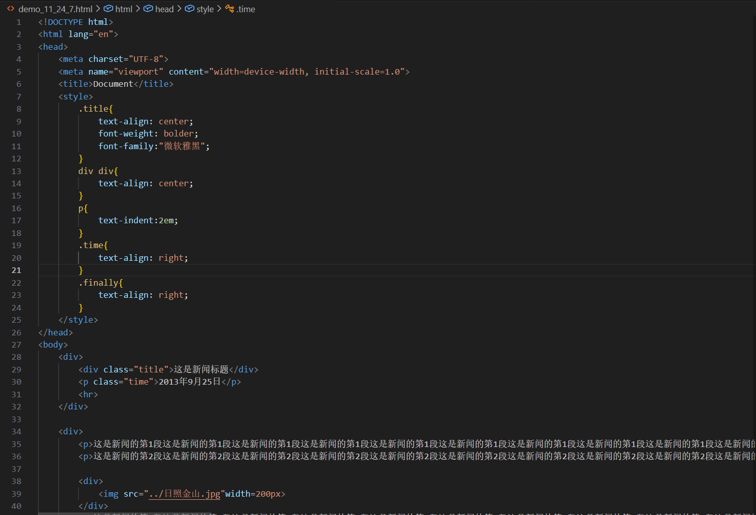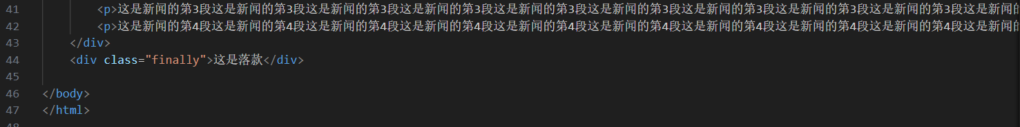 - 这里我是将标题,发布日期,分割线写在一个大的div里面(28~32行)