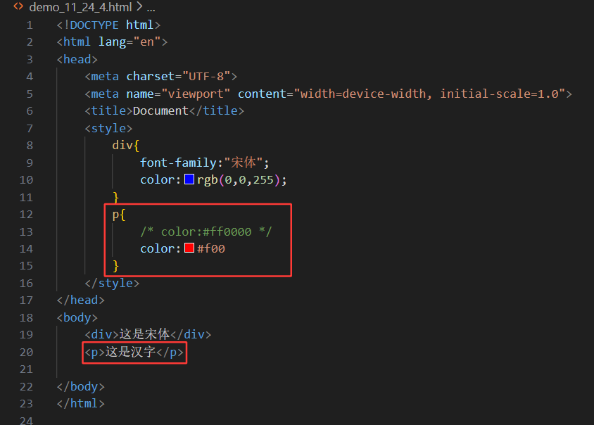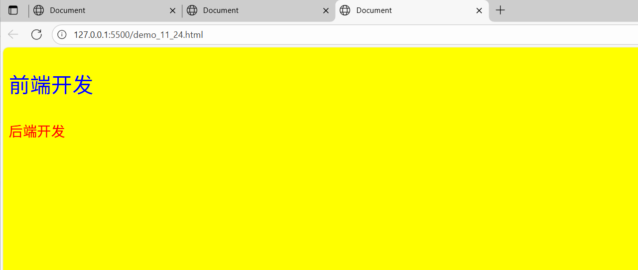 如果像11行和12行这样多写2行的p标签的语句,那么样式颜色就都会一样,如下图: