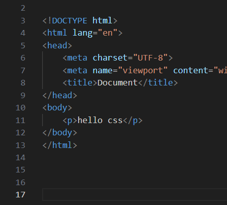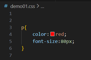 然后再去刚刚创建好的css文件中写选择器:(因为现在我们要对上面这样一个文案的字体颜色进行更改)