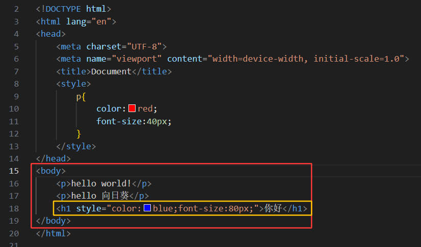 使用"行内样式表"之后: