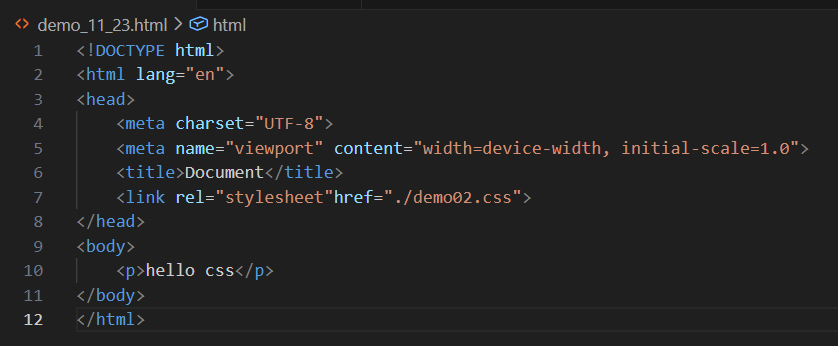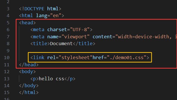 然后写好13行的内容和图3的css后,就写第10行,通过link将css文件引入,其中rel后面写的stylesheet表示是个样式表,href后面写的代表是什么文件
