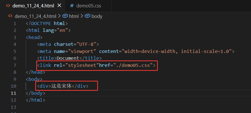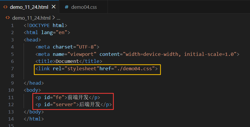 在css文件(即上图中的demo05.css)中: