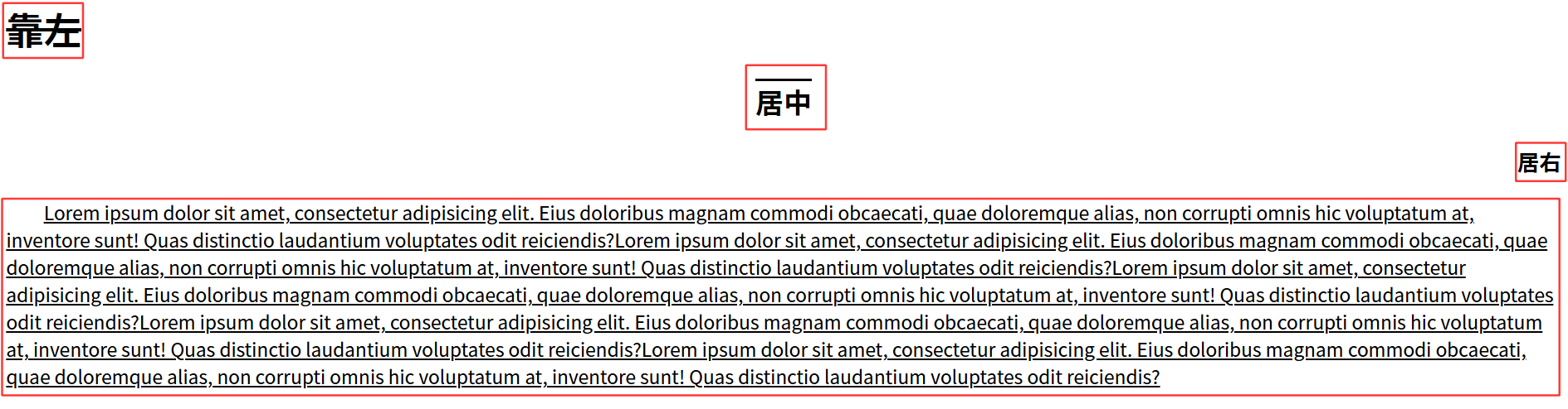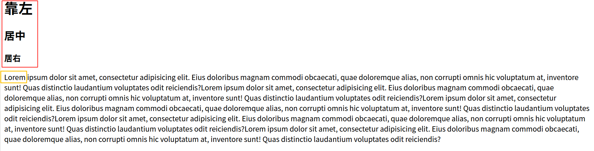 那么现在我想:1.让红色框所选内容真正做到靠左靠右和居中 2.让黄色框之前缩进2个空格内容
