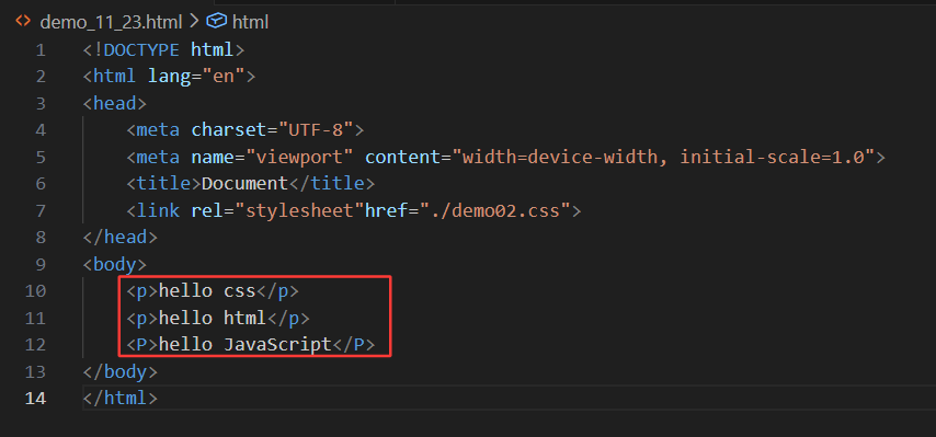 然后先写html文件中的内容:(如11行所示)