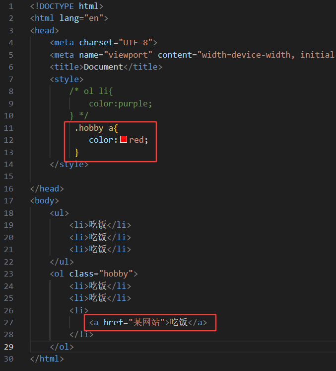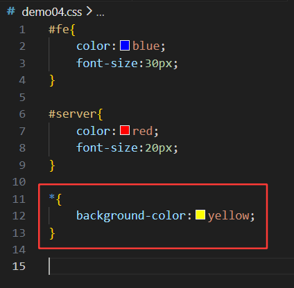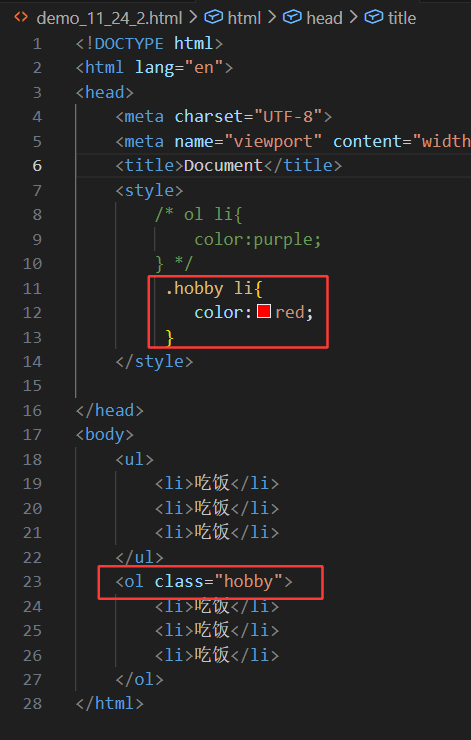 上图的第11行,也是使用到了 父级 子级 {样式声明}