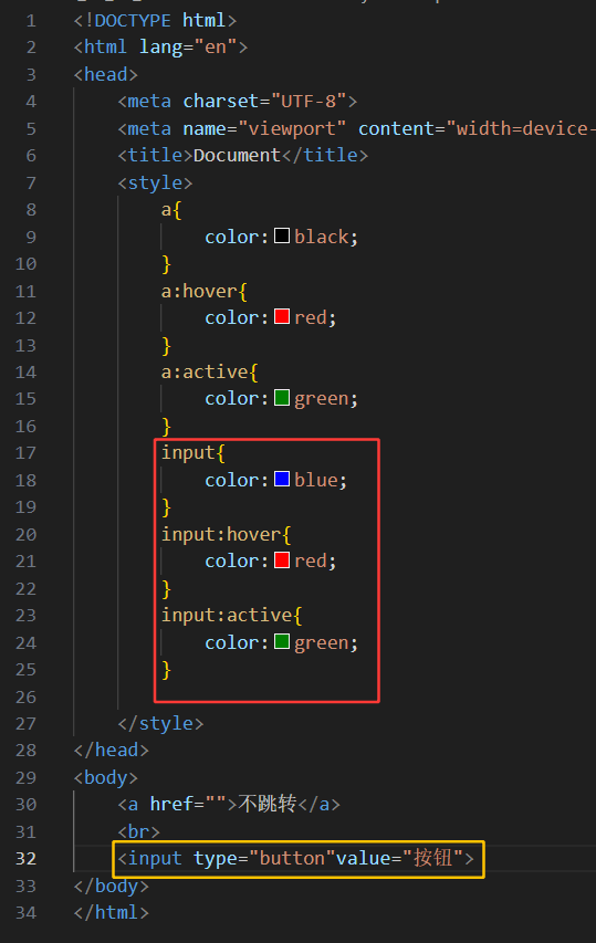 (3)当鼠标按下去但是鼠标没有弹起来,此时展示绿色(下图14~16行)