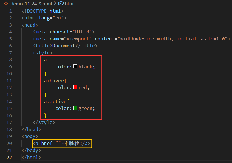 (2)当鼠标悬停到上面的时候,此时展示红色(下图11~13行)