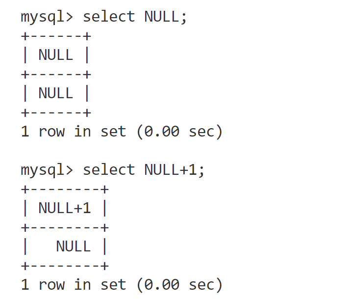 如果建表的时候, 不给某一列添加任何约束,我们会发现MySQL会对 sql语句 优化,默认会带上default null。所以不插入的时候在表示会显示null。