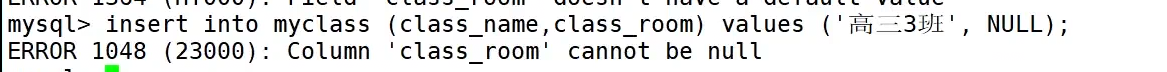 mysql> insert into student(id, name) values(null, 'bbb'); -- 允许为空