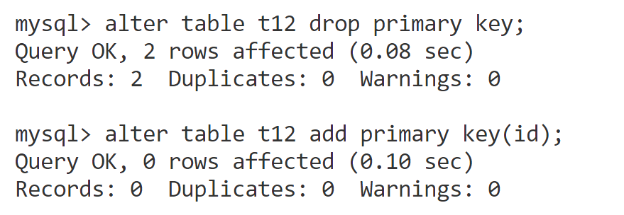 其次删除 | 添加 主键的SQL 语句都是通过alter来进行的
