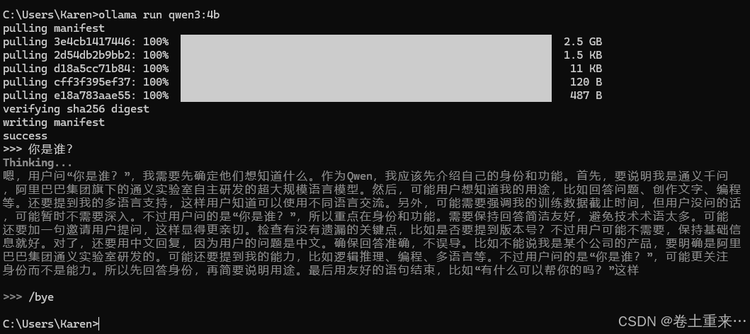 /bye 命令退出对话模式。