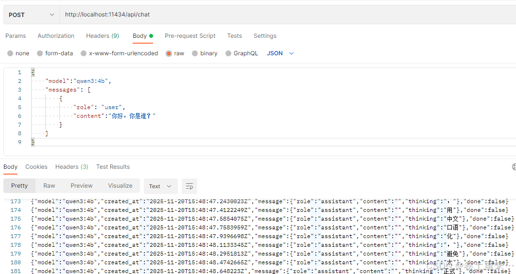 默认调用ollama部署的大模型是流式调用。