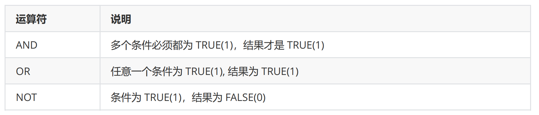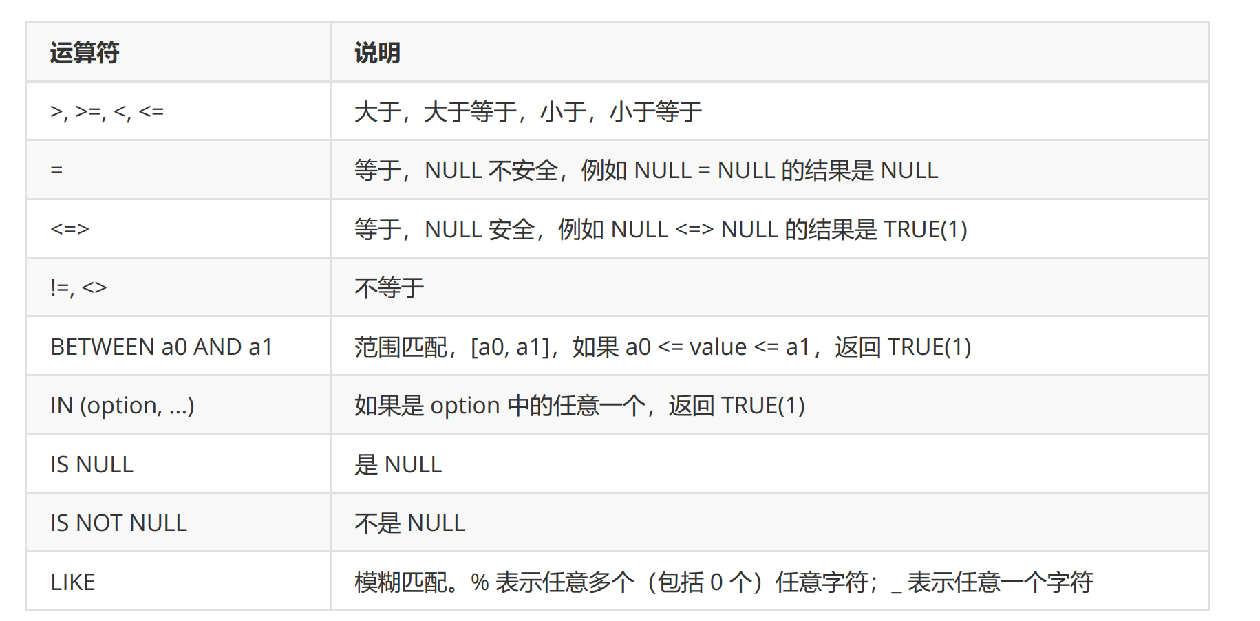 所以也就注定了我们的mysql也有其对应的一系列比较运算符: