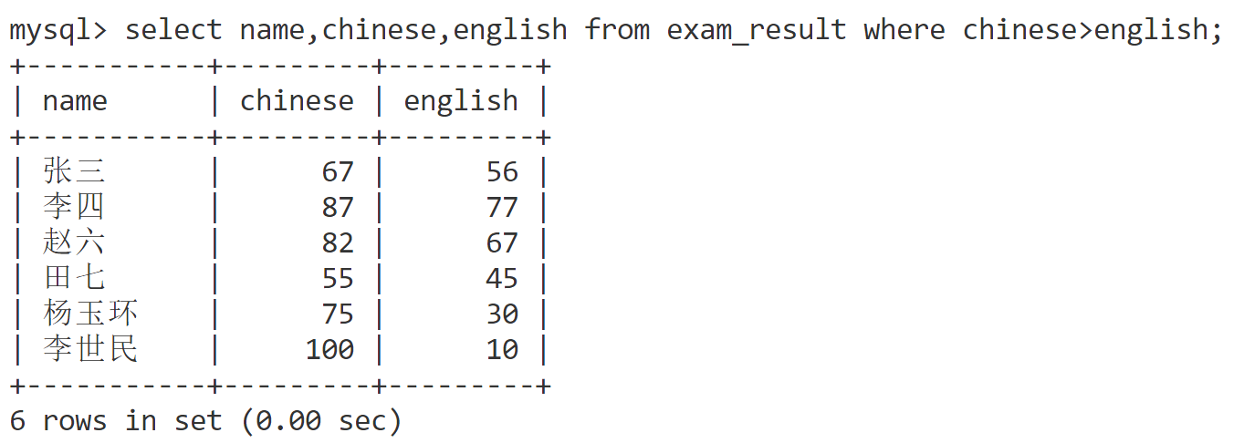 select name,chinese,english from exam_result where chinese>english;