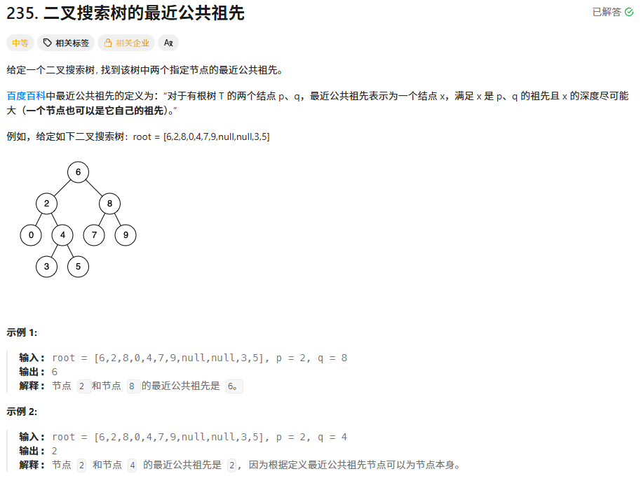 p和q被"分叉"到了它的不同子树(或其中一个是该节点本身)。- 任何在