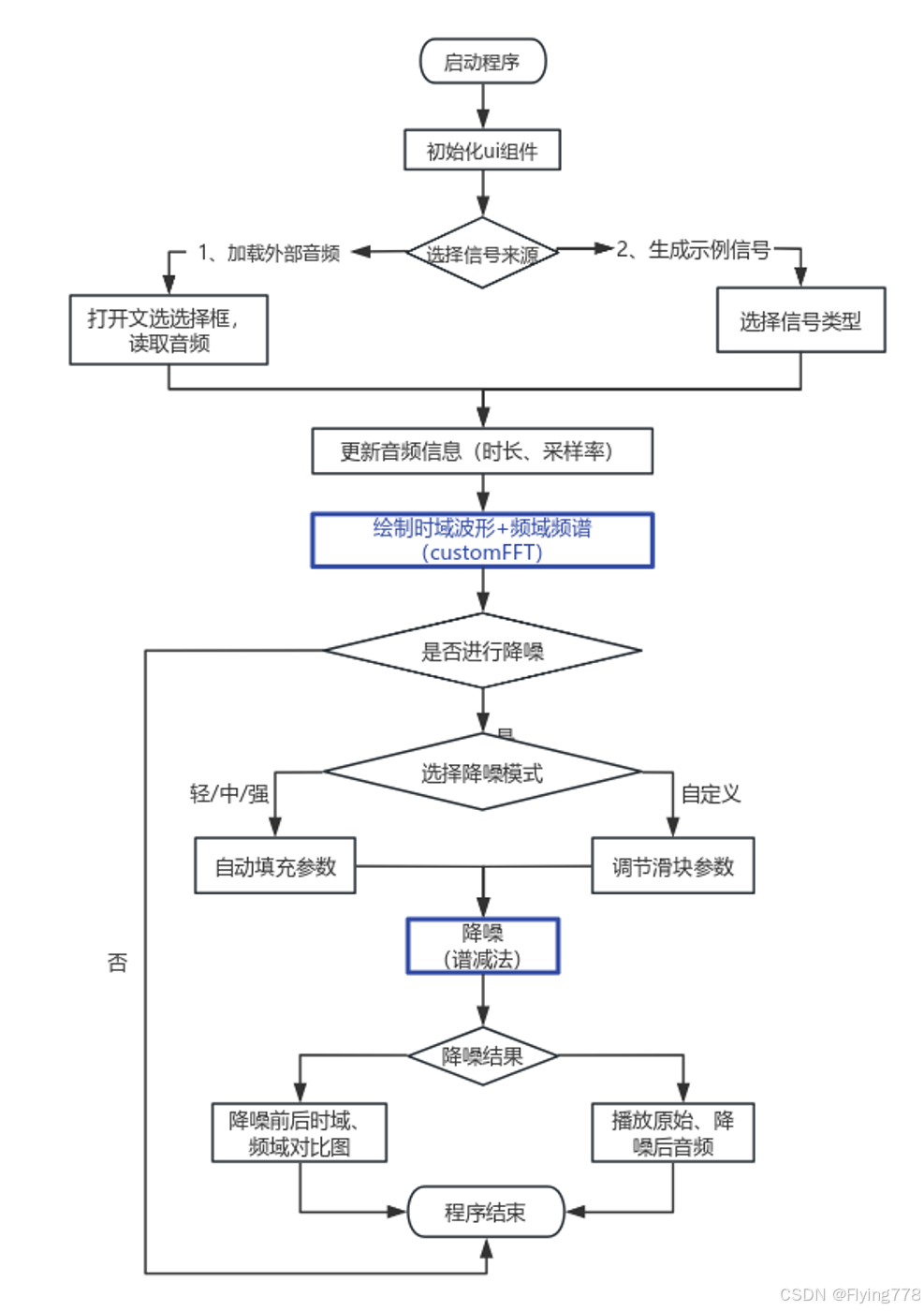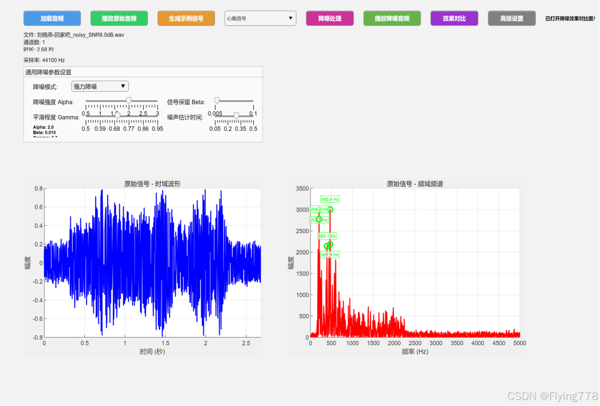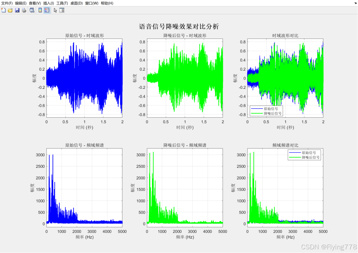 4、生成时域频域对比图,并播放降噪前后音频进行对比