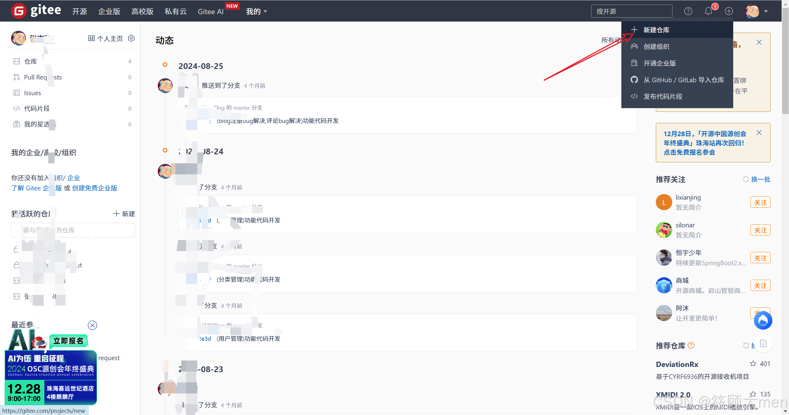 这里注册gitee就不多说了,直接跳过