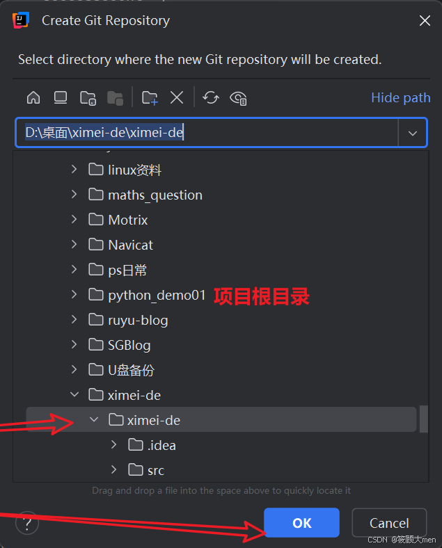 然后会出现下面的路径,选择项目的根目录