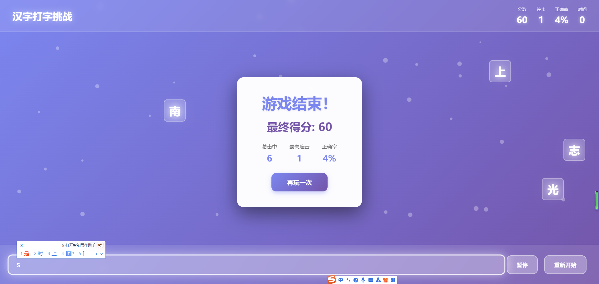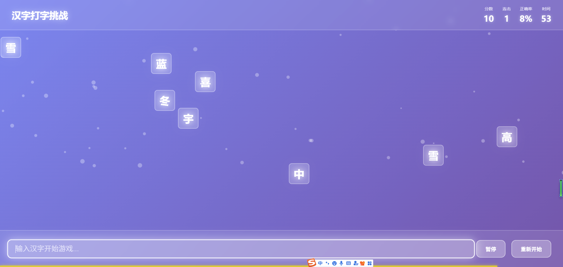 文件开始游戏了!在输入框输入汉字即可开始挑战。