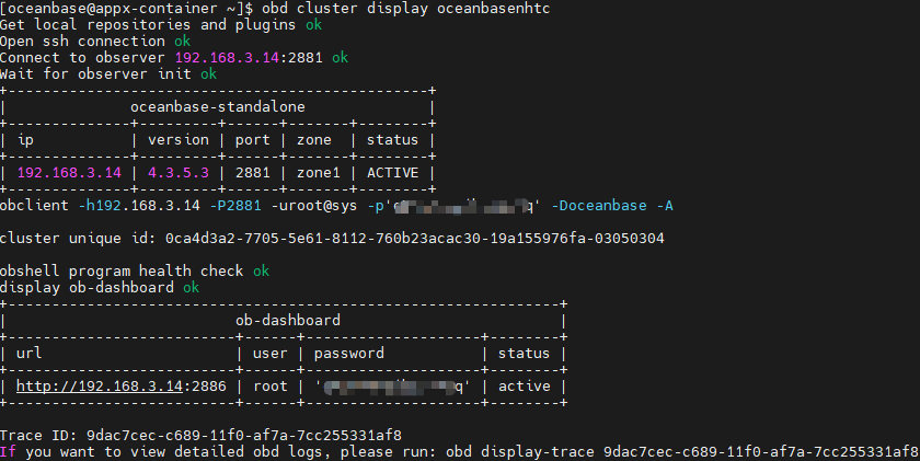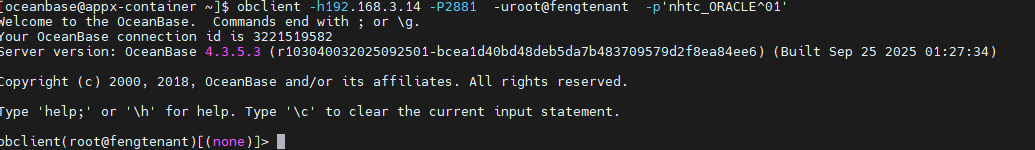看到 obclient -h192.168.3.14 -P'2881' -p'' -uroot@fengtenant -Doceanbase -A