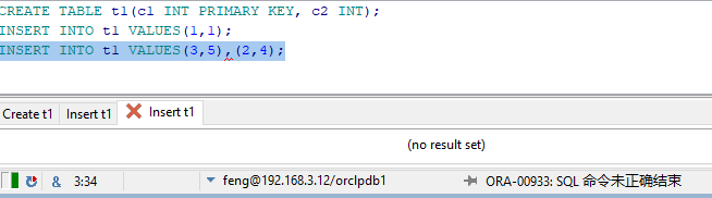 如插入数据,ob可以 INSERT INTO t1 VALUES(3,5),(2,4); 但是oracle不允许