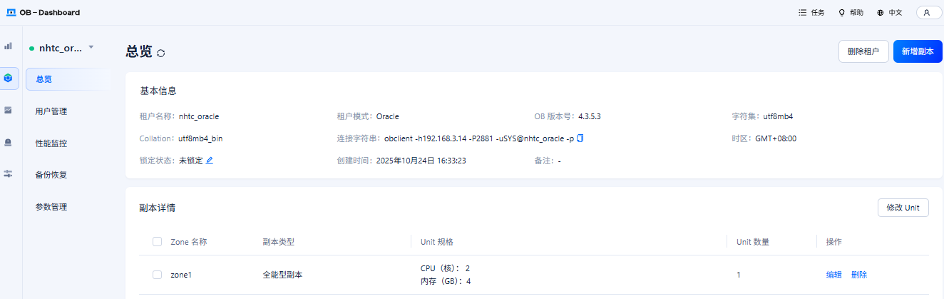 可以通过ob-dashboard 进入集群界面管理,可以看运行情况、用户管理等。