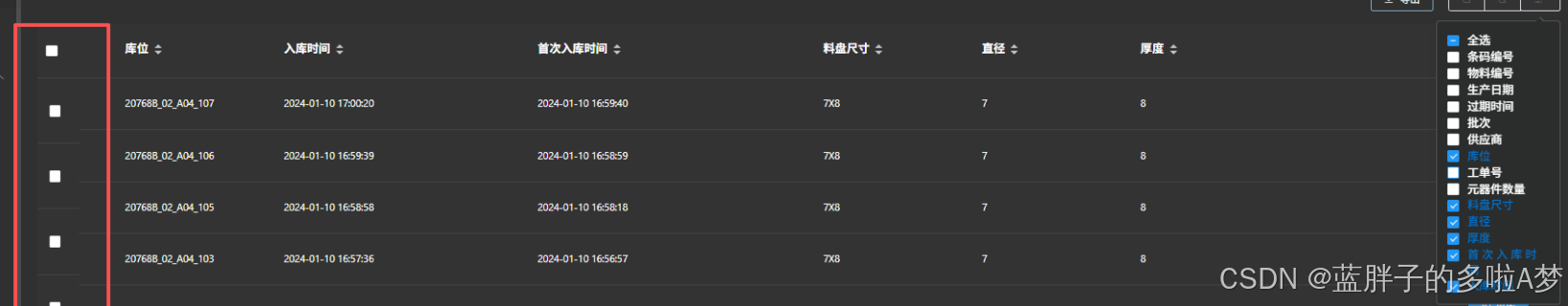 解决el-table里所有错位问题的方法,其实就是,使用min-width ,根据label值的长度调整min-width,min-width过小就会导致各种奇葩的错位,例如上边这个库位的label,width="100"就会出现错位现象,设为min-width:100就没有问题了。