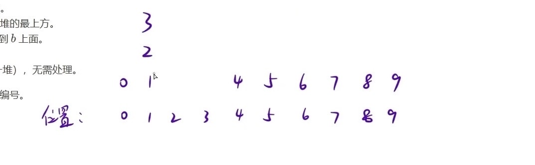 二维数组,行作为位置列作为该位置存放的木块;当我们要移动时就是遍历所有 指定元素与指定元素的上方元素(如下图所示),然后转移到 指定元素的上方 去(通过尾插的方法)
