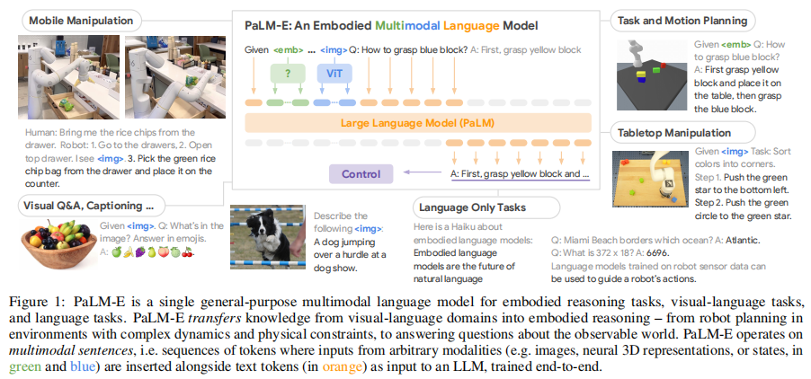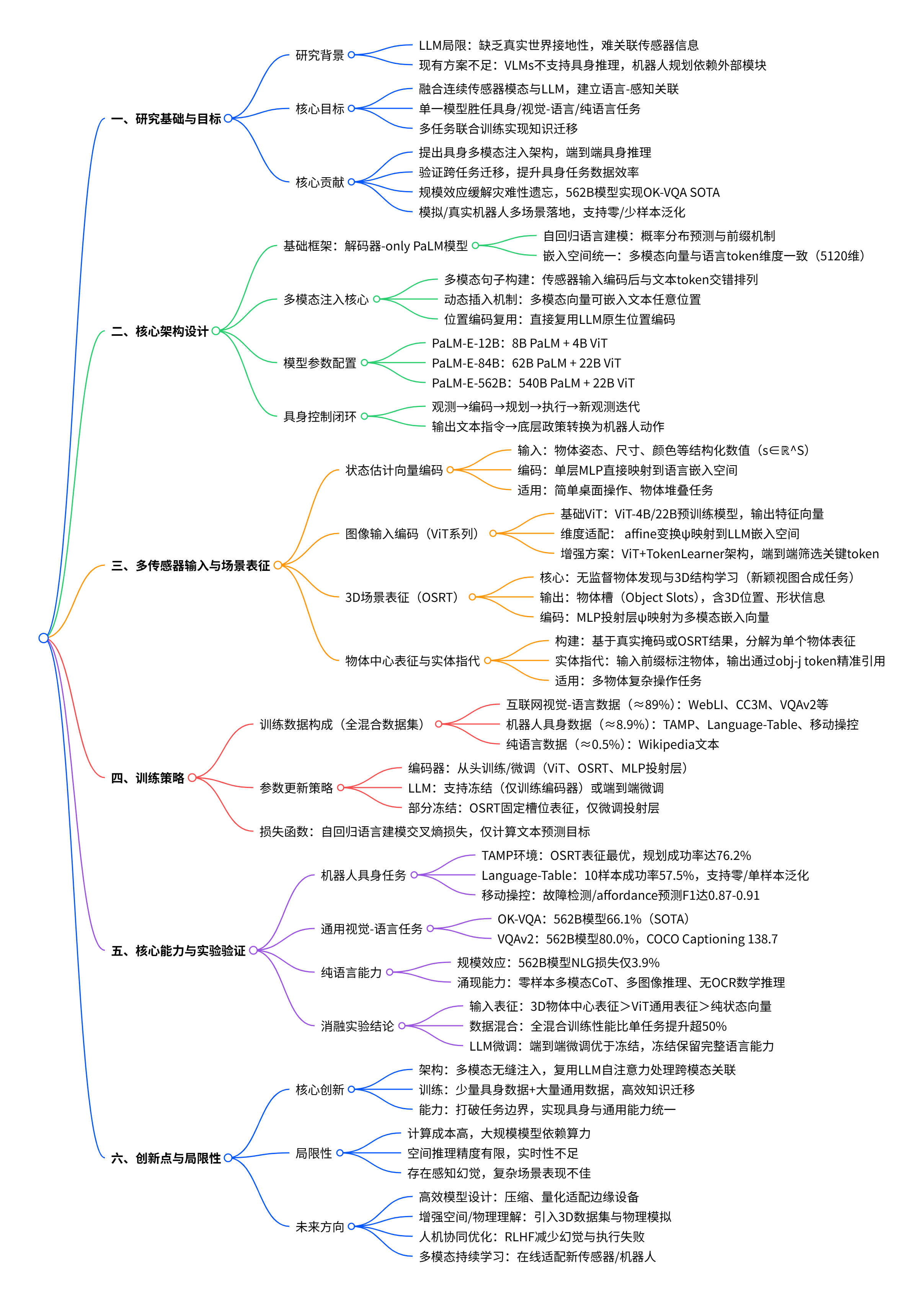 - 提出具身语言模型架构:将多模态传感器输入直接注入 LLM 的嵌入空间,实现端到端的具身推理。