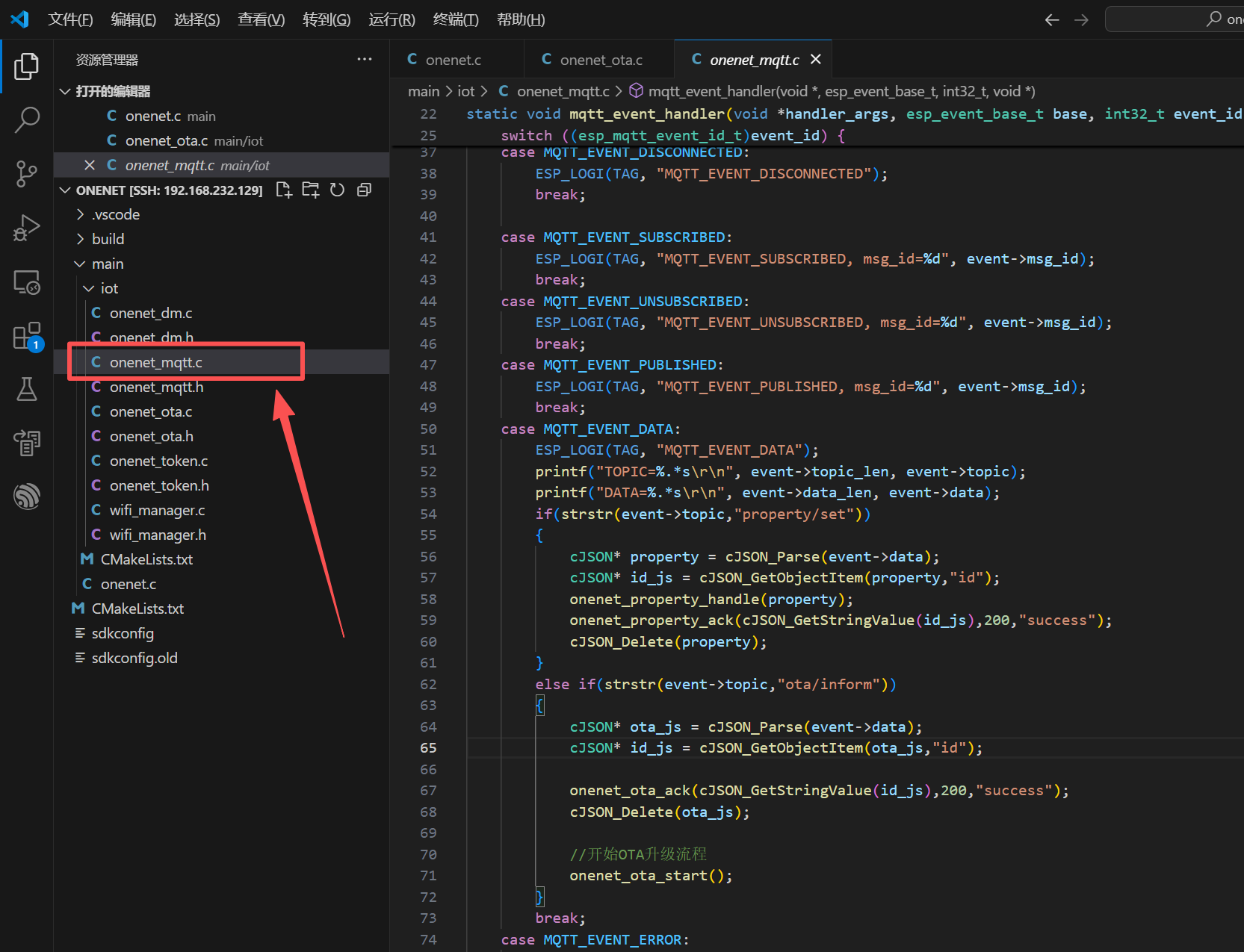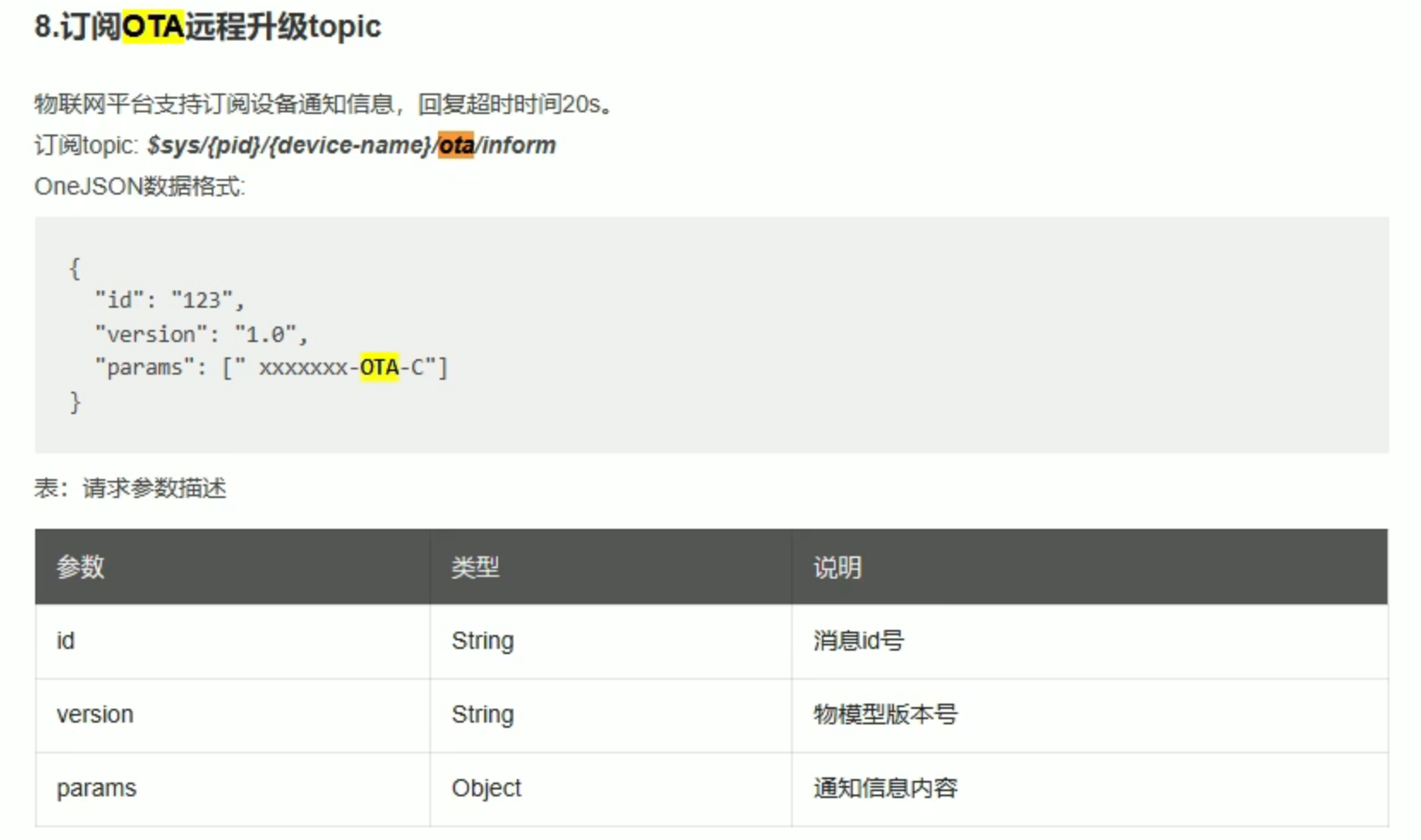 咱的ESP32需要订阅OneNet平台的升级topic,当需要升级时,平台会下发升级通知