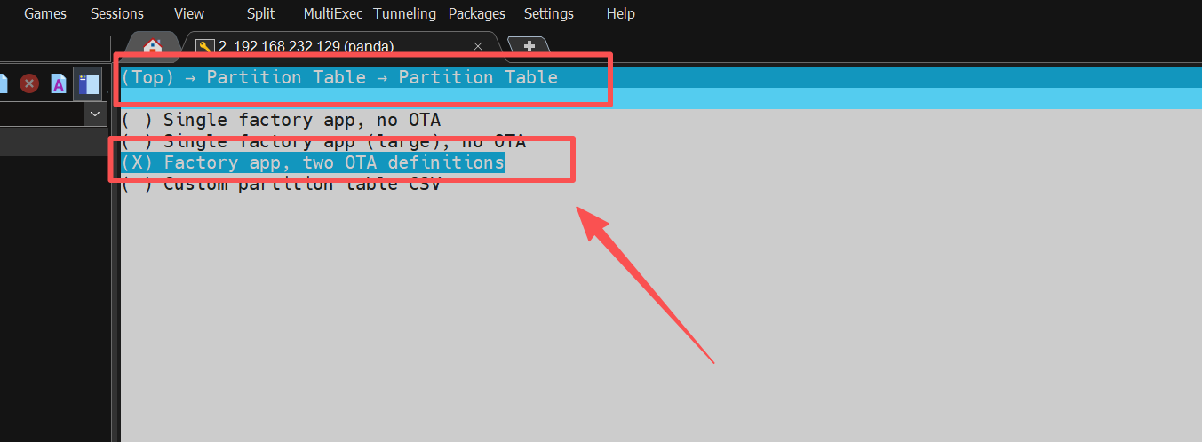10、在这个路径下,选择第三个选项,一个出厂默认固件+两个OTA分区