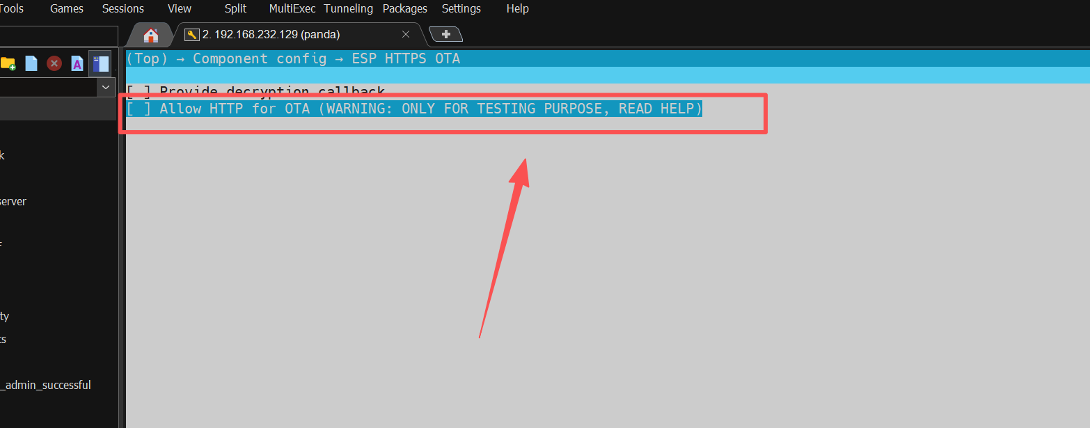 11、在这个路径下,打开HTTP之中OTA的功能,不过正式产品的开发不能用HTTP来OTA,得用HTTPS,因为HTTP是不加密的,很危险,这个只能用来在本地测试OTA流程是否跑通