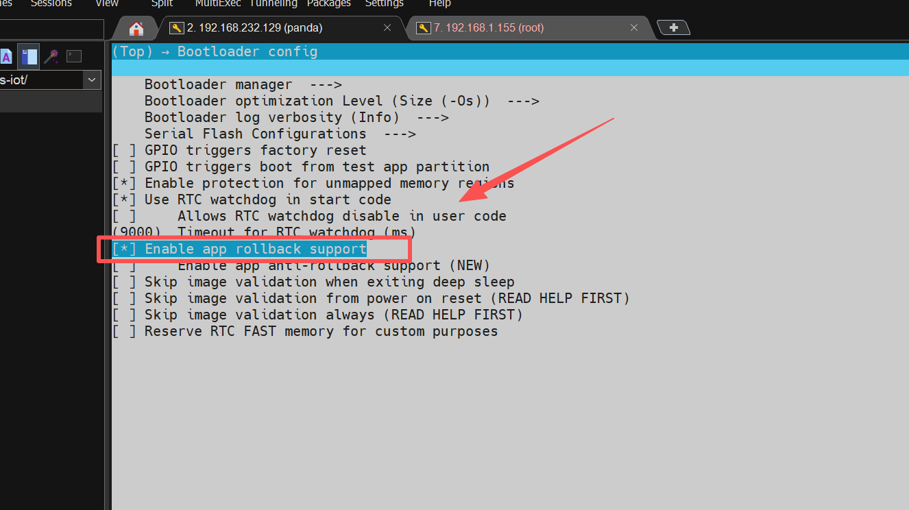 3、启用APP的回滚功能,就是OTA后如果发现这个新程序不好使,则会自动返回运行OTA前的程序