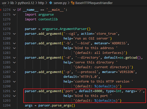 所以这里出现的第一个参数 2025,不带选项,而 server.py 里面有且仅有一个位置参数,那当然就是 port 端口参数了