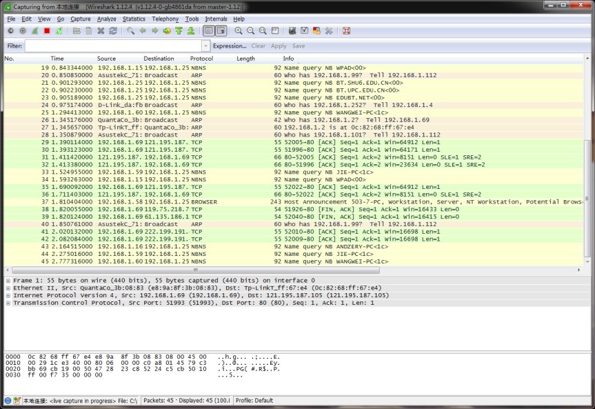 图6-8 Wrieshark窗口思考下列问题: