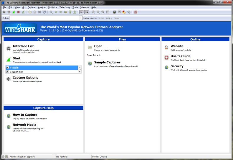 - 启动 Wireshark,开始分组捕获;