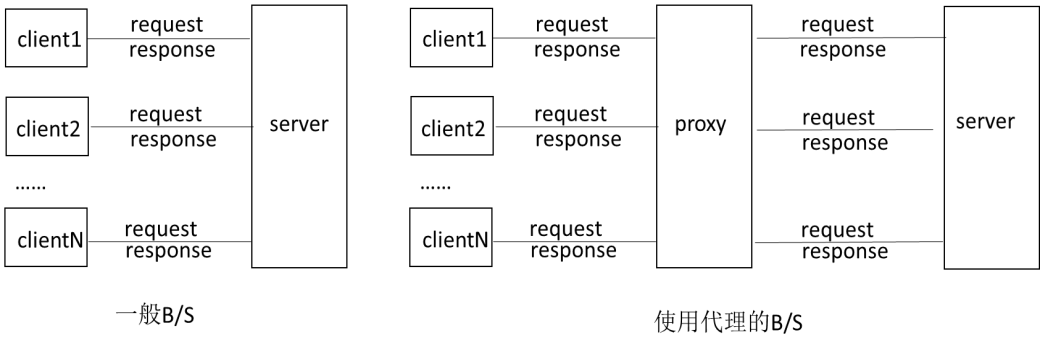 代理服务器,俗称"翻墙软件",允许一个网络终端(一般为客户端)通过这个服务与另一个网络终端(一般为服务器)进行非直接的连接。如图 1-2 所示,为普通 Web 应用通信方式与采用代理服务器的通信方式的对比。